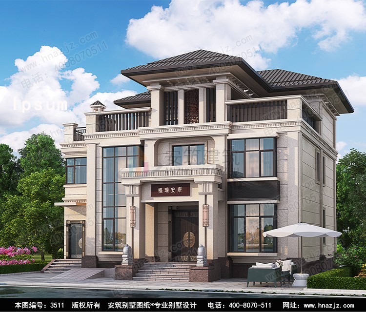 | 3511三层新中式别墅设计图纸复式挑空 | |