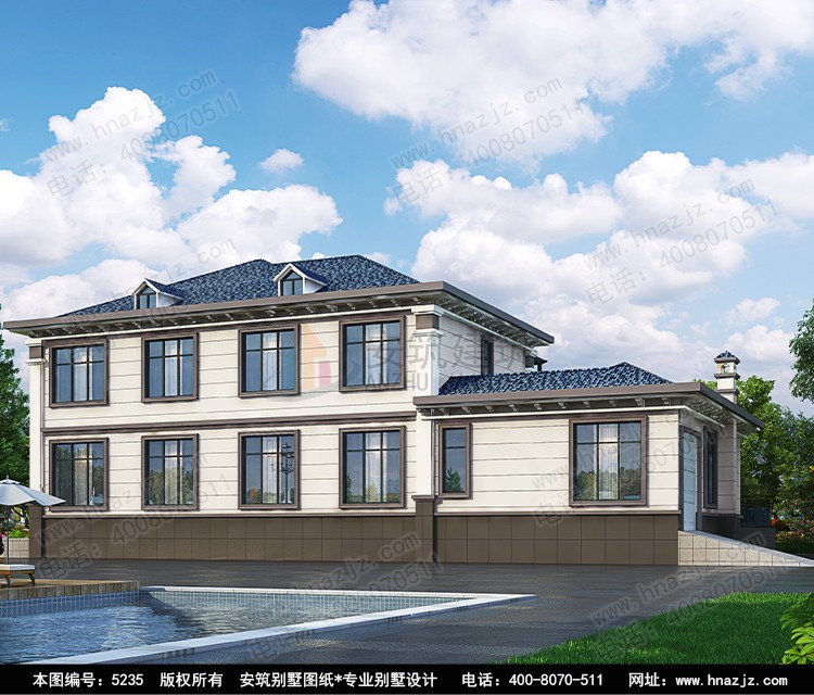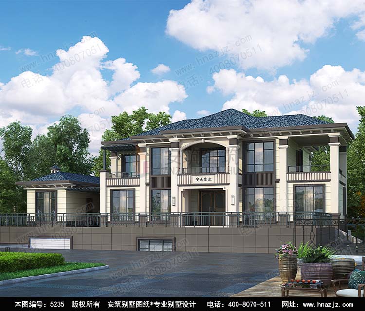 | 5235二层新中式带地下车库别墅设计图纸 二层带偏房设计 | |