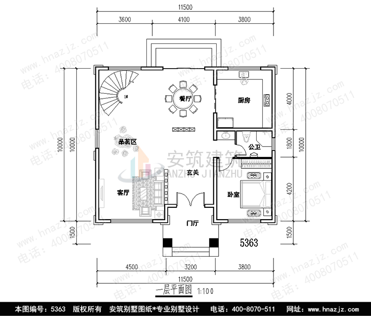 本套设计由湖南安筑建筑设计有限公司竭诚提供,各专业资深设计师精心合作完成,设计内容严格遵循国家现行建筑行业规范。图纸不提供免费修改服务,图纸价格为A3纸质档。本公司为您提供所购图纸技术服务。版权所有,禁止复制盗卖!