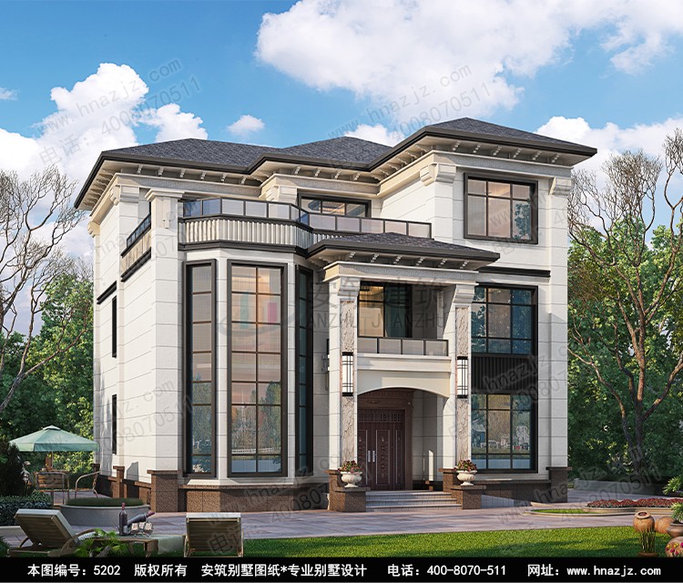 | 5202三层新中式挑空客厅农村别墅设计图纸 | |