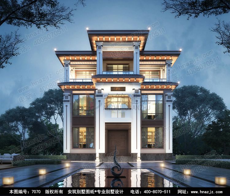 | 7070三层新中式风格新农村别墅建房图纸 | |