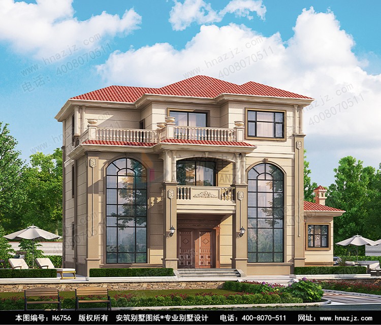 | 6756三层欧式风格带偏房新农村别墅建房图纸 | |