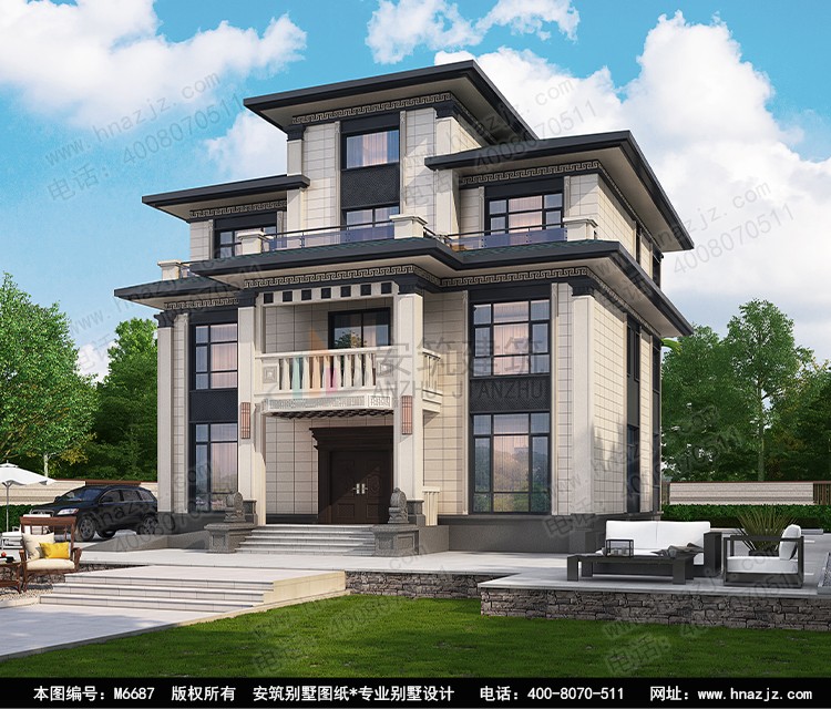 | 6687三层新中式风格新农村别墅建房图纸 | |