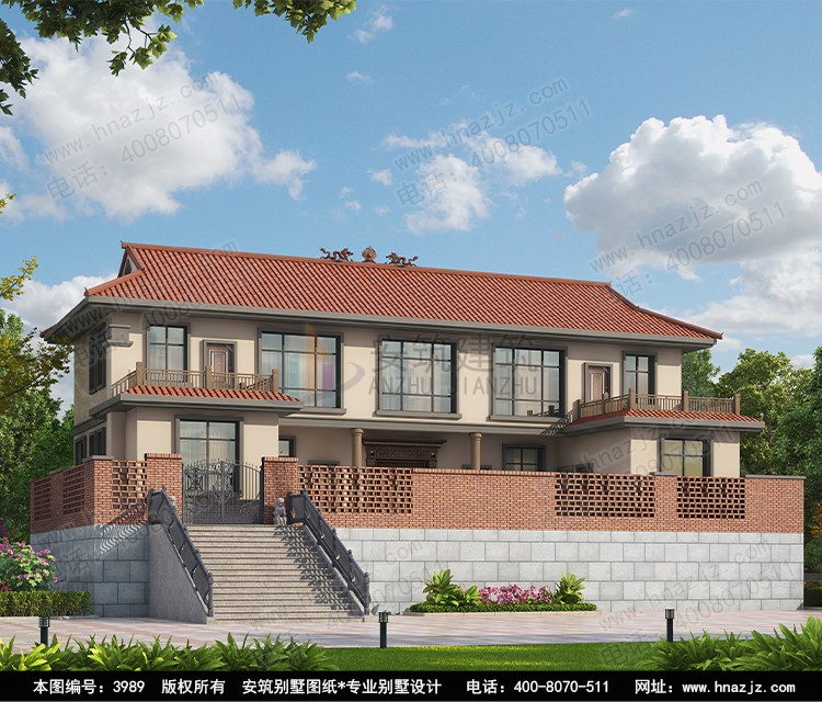 | 3989二层中式风格架空新农村别墅建房图纸 | |