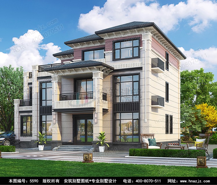 | 5590三层现代风格新农村别墅建房图纸 | |