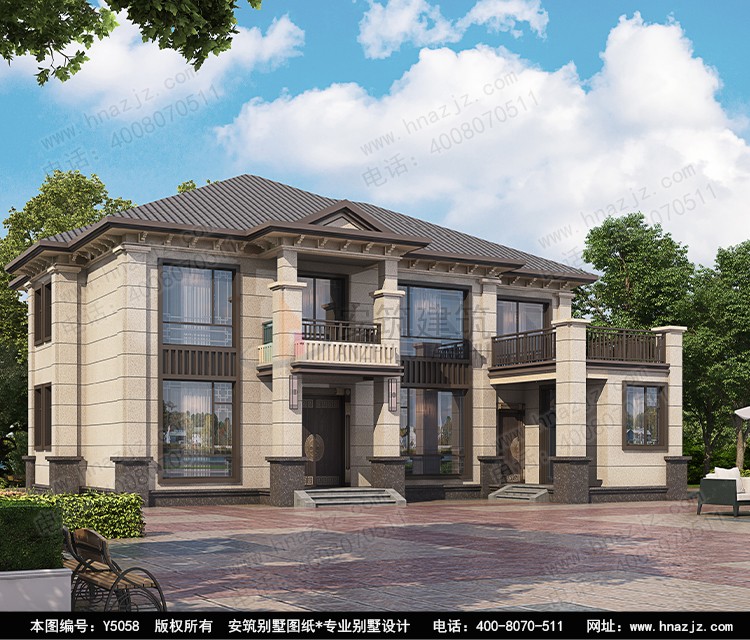 | 5058二层7字型新中式风格新农村别墅建房图纸 | |