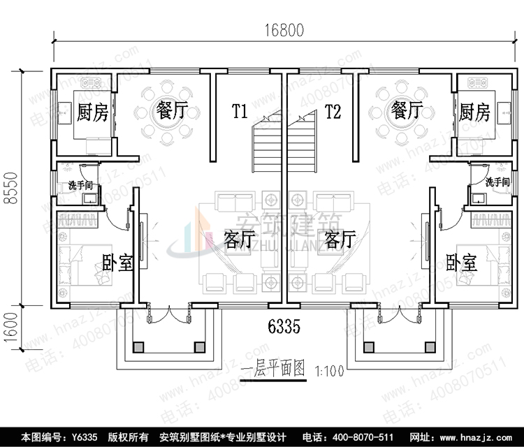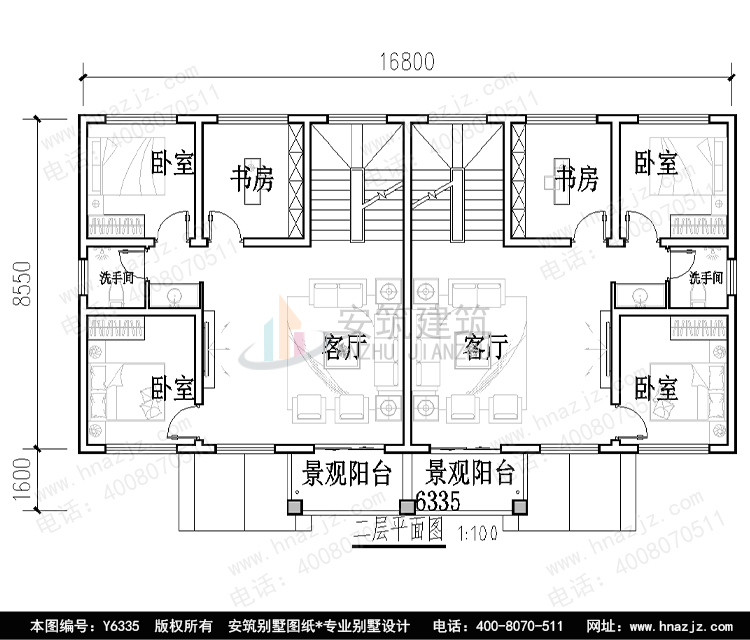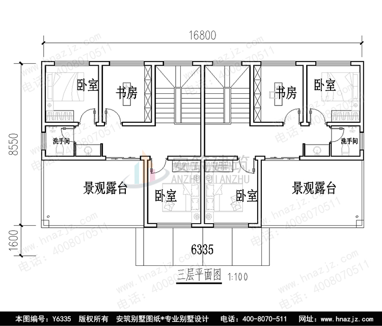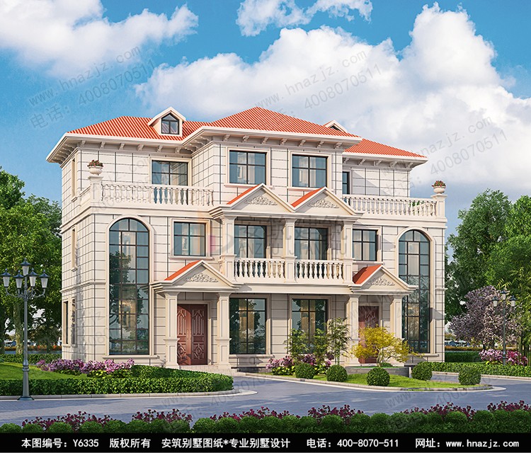| 6335三层欧式风格双拼新农村别墅建房图纸 | |
