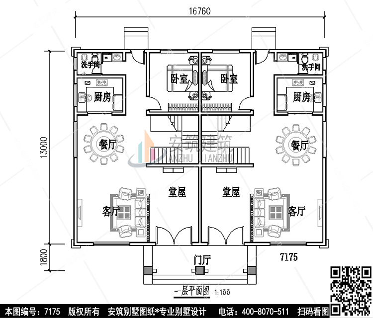 | 双拼16.7*13米三层带堂屋兄弟房,农村新款两户效果图7175 | |