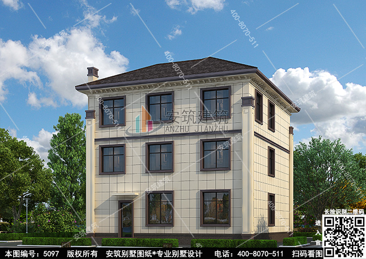 | 农村12米左右三层新中式别墅设计外观图户型图设计5097 | |